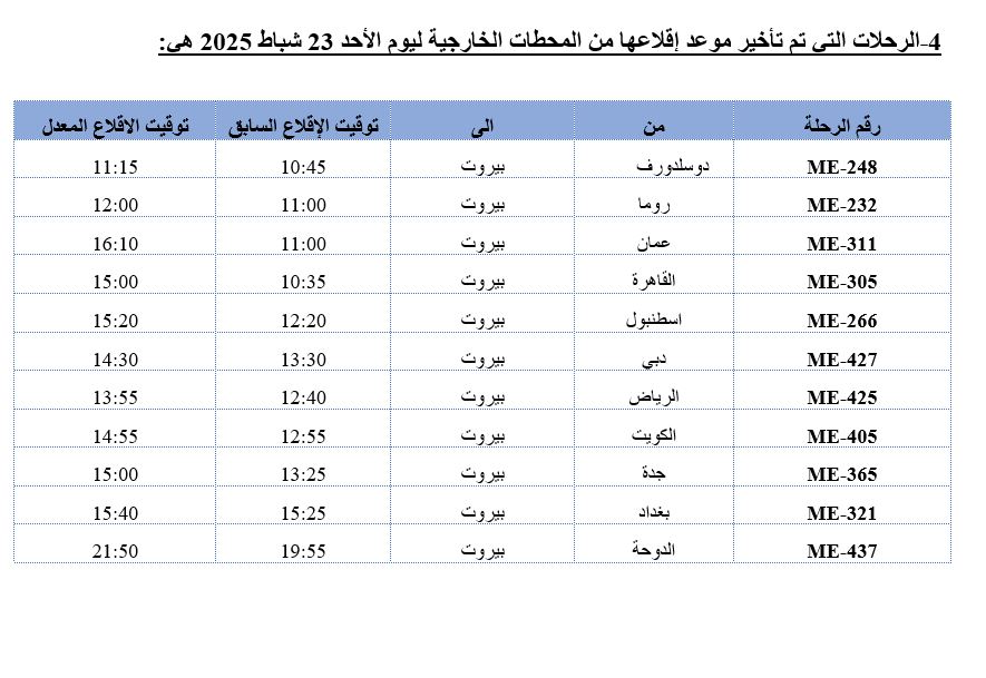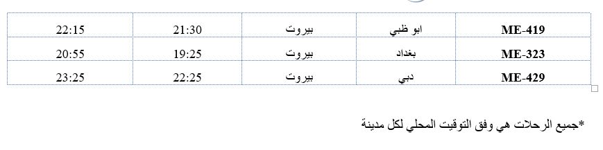 الرحلات التي تم تعديلها هي وفق التالي، أما مواعيد بقية الرحلات فستبقى وفق موعدها المجدول سابقاً.