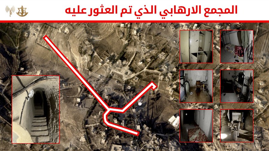 وأضاف أدرعي: “في المجمع الإرهابي تحت الأرض والذي يقع على بعد 1.5 كيلومتر عن الحدود تم اكتشاف غرف قيادة وغرف إقامة ومستودعات للأسلحة احتوت على بنادق ومعدات قتالية جاهزة لتنفيذ عملية اقتحام للحدود الاسرائيلية”.