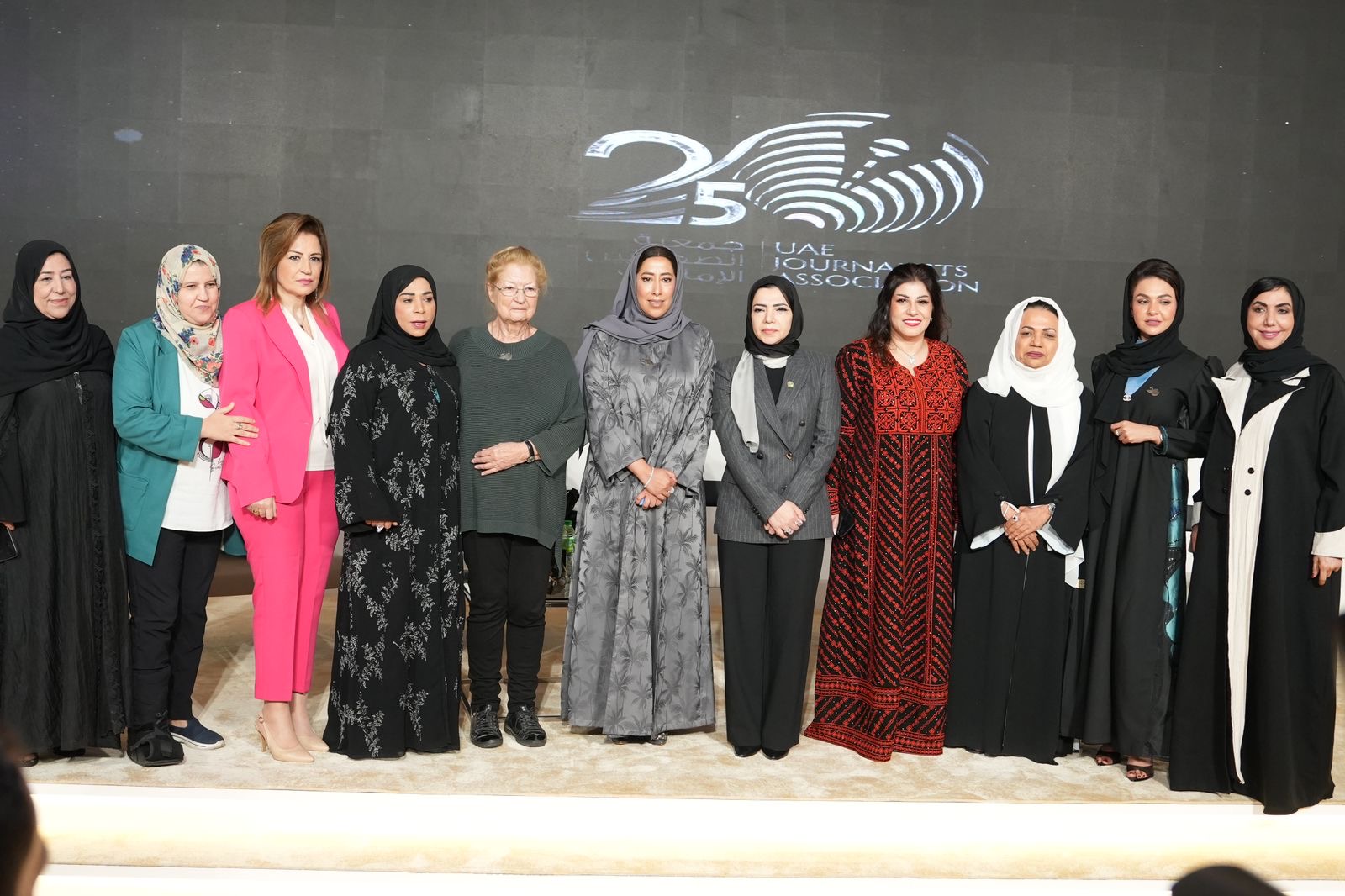 وألقت رئيسة جمعية الصحفيين الإماراتيين فضيلة المعيني كلمة أعلنت فيها عن تكريم رموز الصحافة وروادها محلياً وعربياً، مثمنة عطاءات المؤسسين الأوائل للجمعية، الذين أرسوا قواعد المهنة بكل أمانة ومسؤولية، ومهدوا الطريق لجيل جديد من الإعلاميين المبدعين.